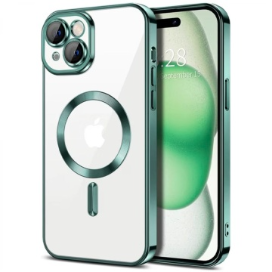 Descoperă husa MagSafe pentru iPhone 15, cu protecție din sticlă pentru camere, în nuanța vibrantă de verde – soluția perfectă pentru a-ți proteja ...