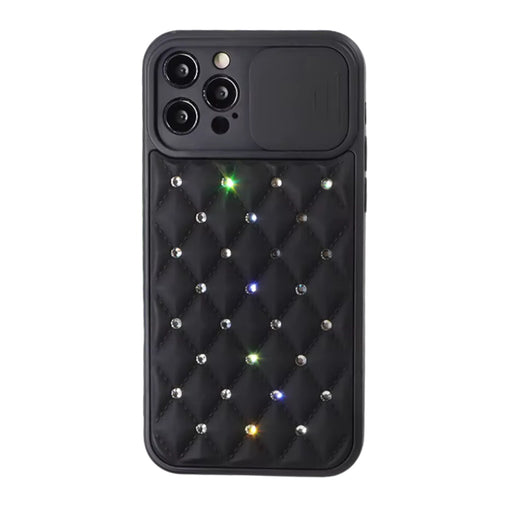 Husă iPhone 13 Pro Max Spate Imitatie Piele cu Pietre, Protecție Cameră, Negru – Eleganță și Protecție Premium Protejează-ți iPhone 13 Pro Max cu a...