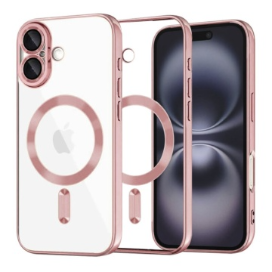 Vezi detalii completeHusa iPhone 16 Plus Transparenta Cu Margini Colorate Magsafe, Protectie Camera, Roz